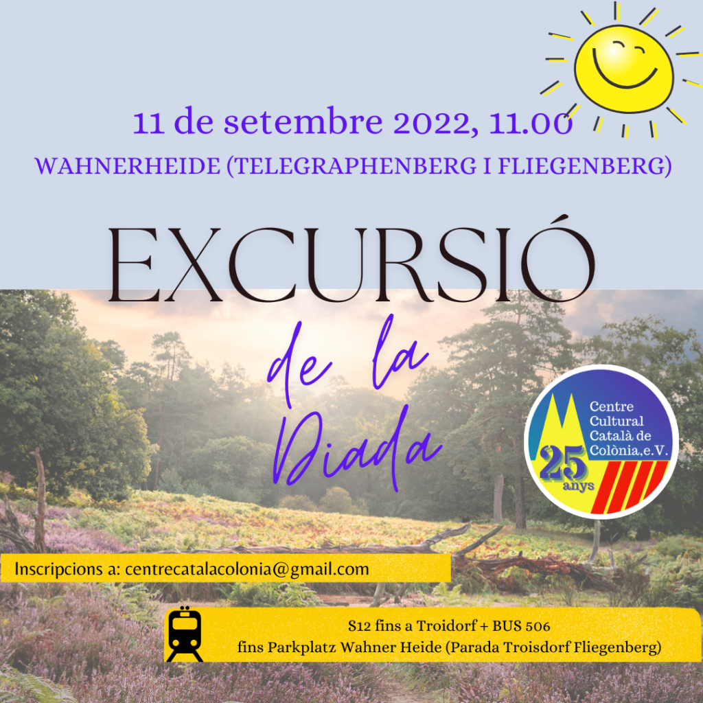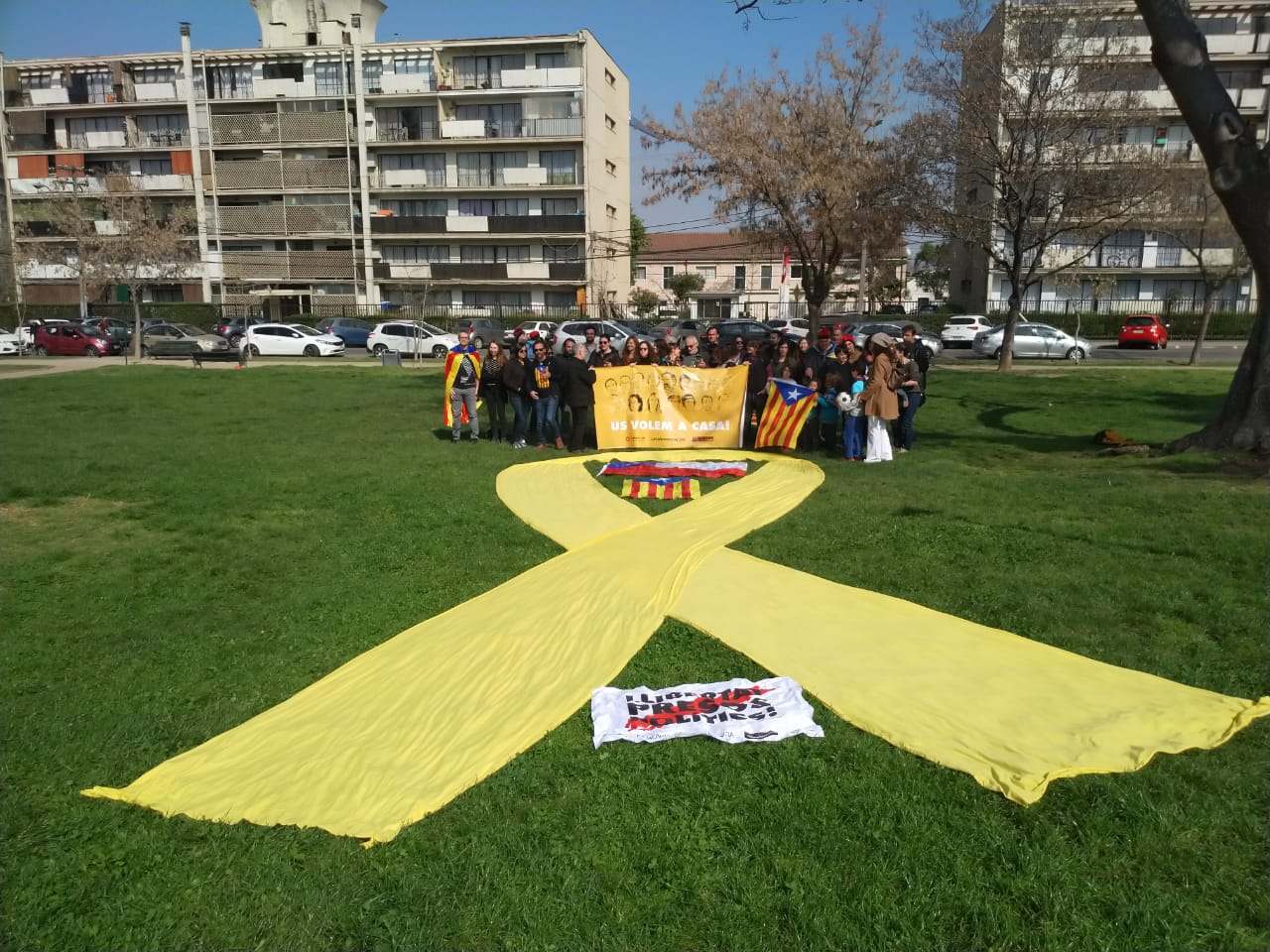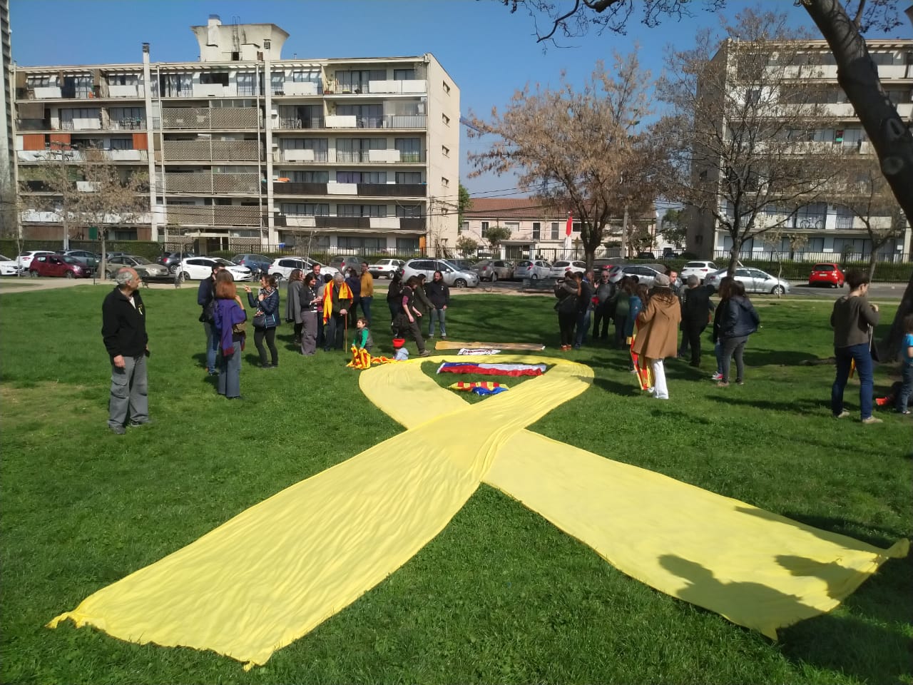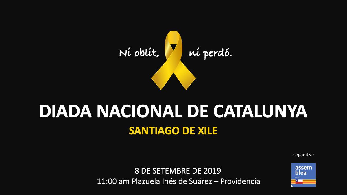 (un altre any l’ANC Xile us convoca a celebrar la Diada Nacional de Catalunya el proper dia 8 de setembre a les 11 AM. ÑAquest any no estem per festes de manera que us demanem venir de color fosc per tal que el que destaqui sigui el llaç groc que estendrem en acte de protesta per la situació dels presos polítics que segueixen a la presó. Us esperem.)
