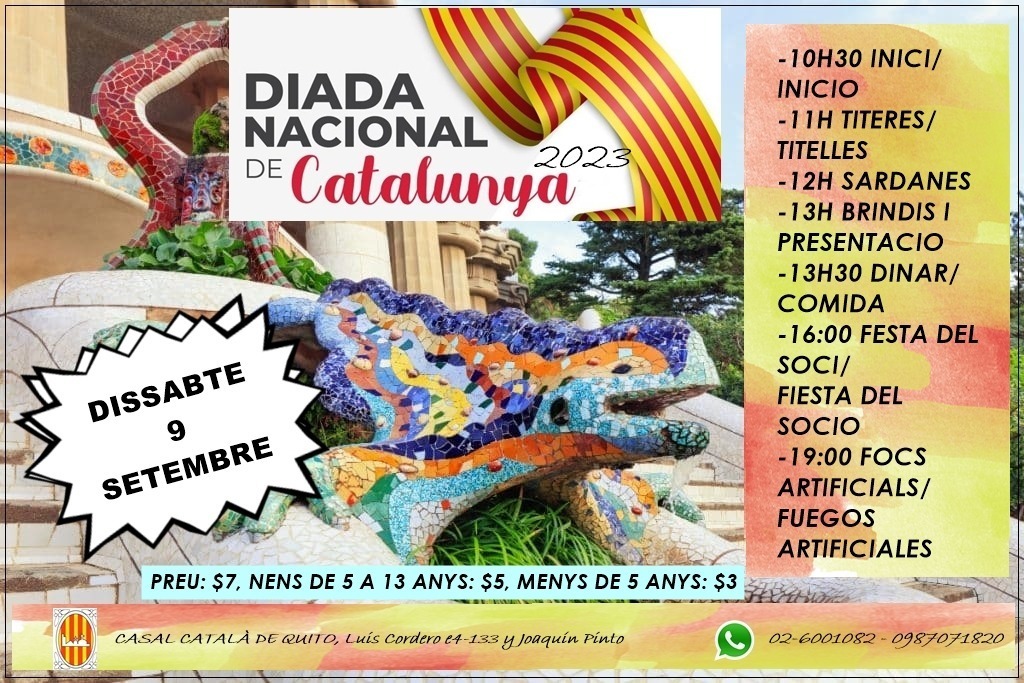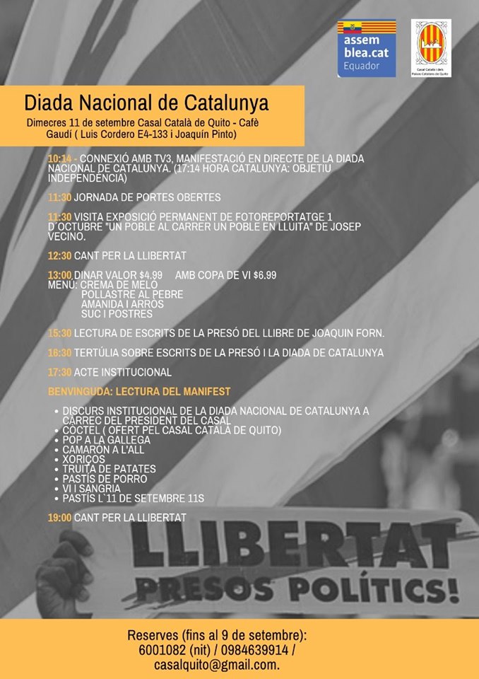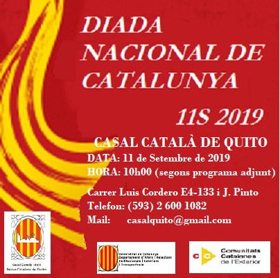 (Diada Nacional de Catalunya Públic · Organitzat per Assemblea Nacional Catalana d'Equador i Casal Catala de Quito Casal Catala de Quito Luis Cordero E4-133 y Joaquín Pinto, 170524, Quito, Ecuador)