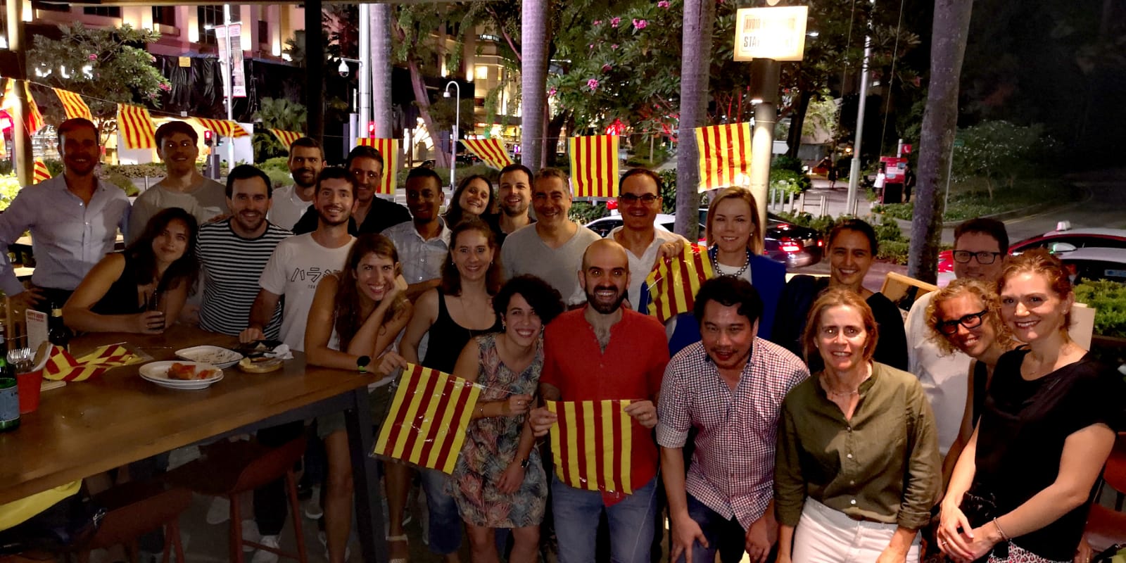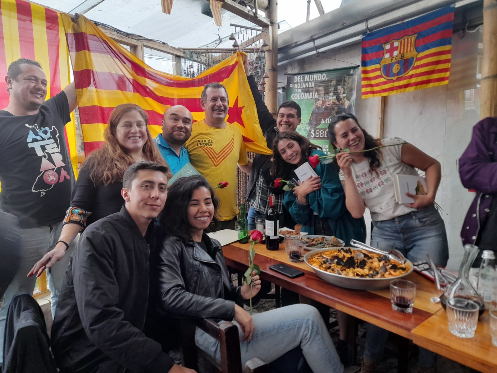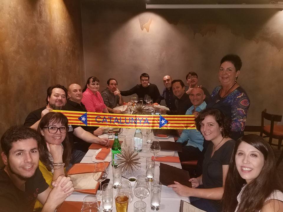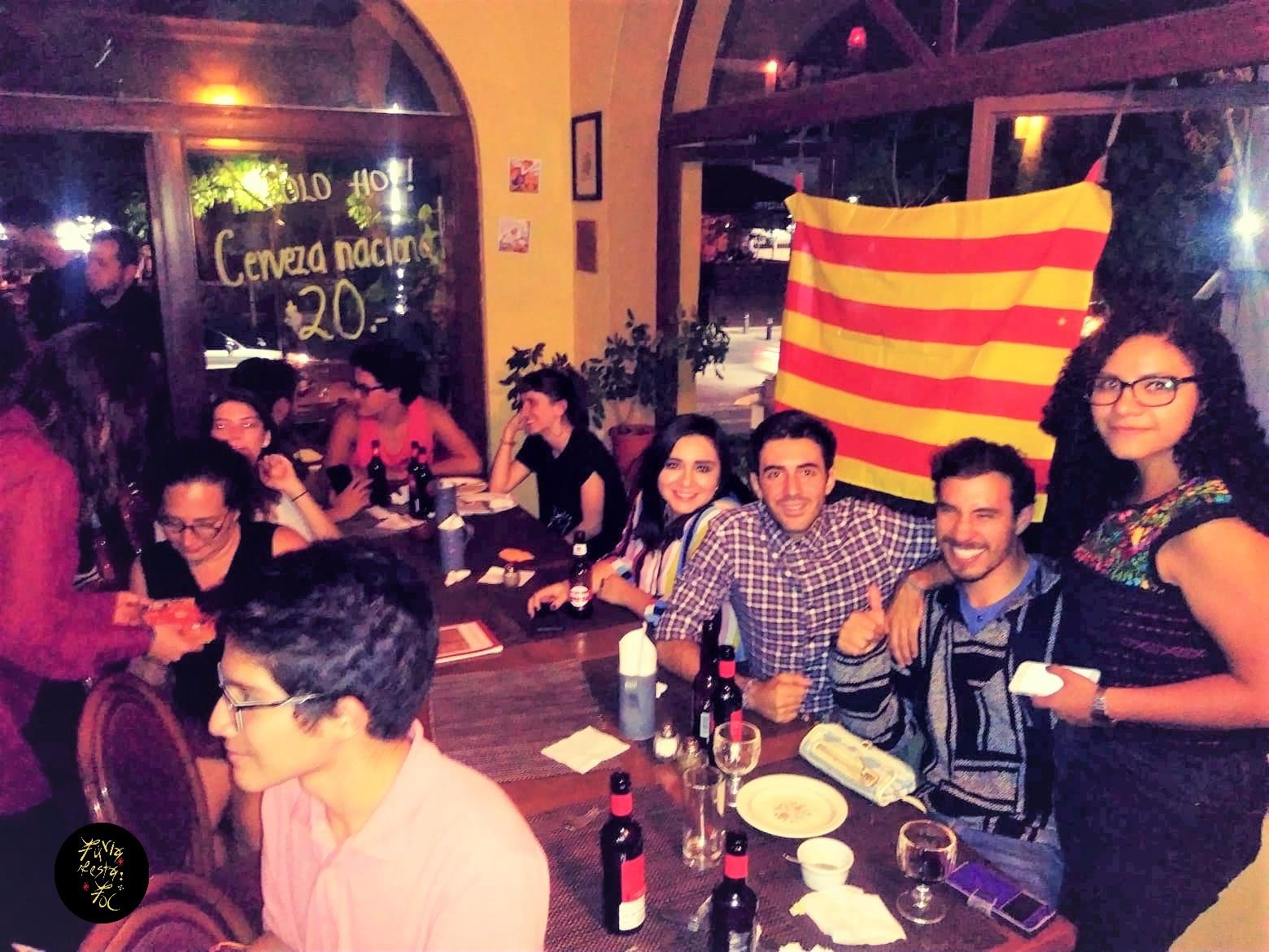 (El lectorado de catalán del IRL en la Universidad de Guadalajara, organizó una cena para celebrar la diada, l'onze de setembre. Tuvimos el honor de ser invitados y colaborar en conjunto. Disfrutamos de un menú muy catalán: butifarra amb mongetes, vi, birra i pa amb tomàquet, todo preparado por el Cargol, restaurante catalán en Guadalajara. Sin duda, el encuentro fue inigualable, convivíamos mexicanos, estudiantes de catalán, estudiantes de intercambio de Barcelona, Girona y Madrid en conjunto de familias catalanas que residen y han hecho una vida en esta ciudad. Claro, también practicamos y hablamos en catalán :D Realizamos un sorteo con regalos de parte del lectorado de catalán y de Plataforma per la llengua. La cultura y la lengua nos unieron, pero sin duda, el interés por conocer otra cultura y darnos la oportunidad de compartir una celebración para conocernos desde nuestras identidades. BONA DIADA!)