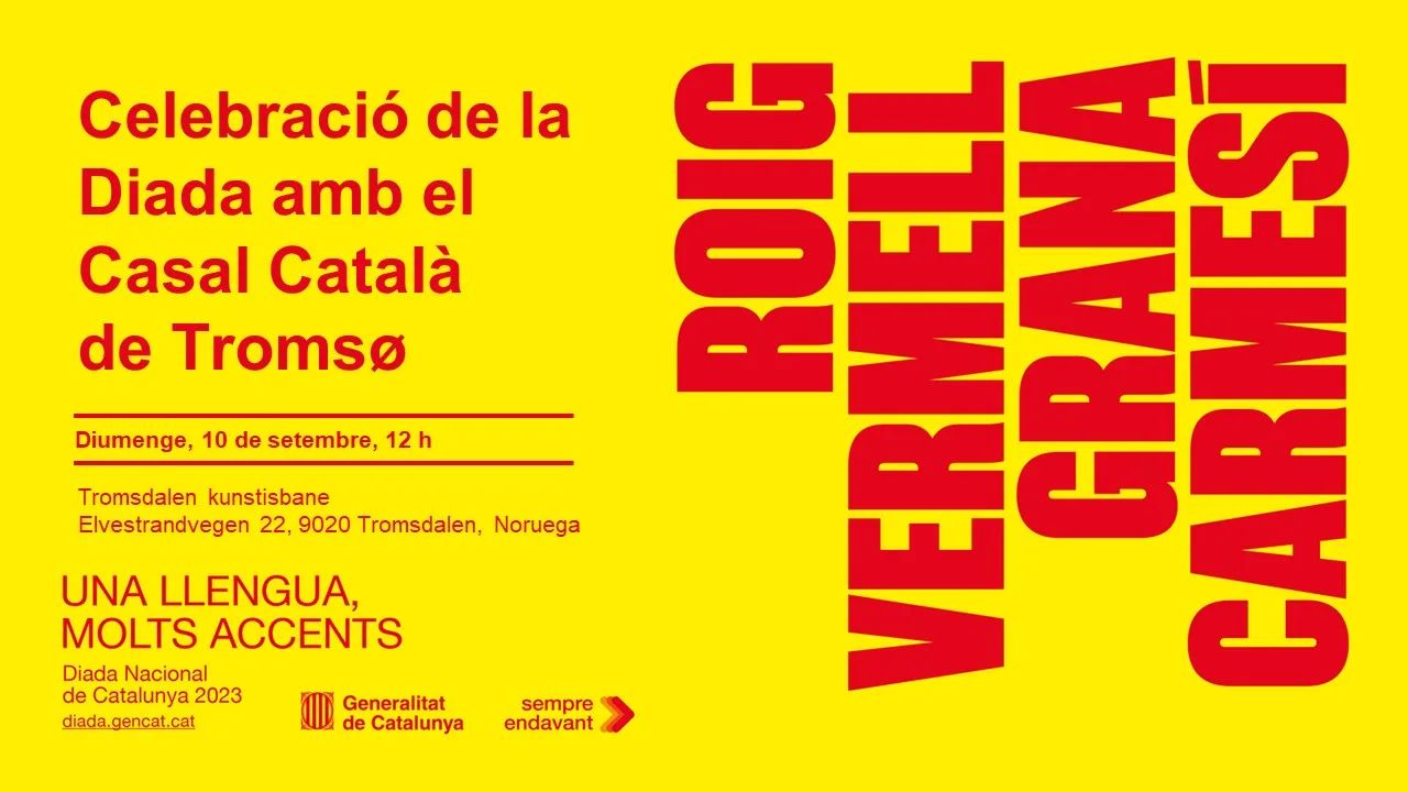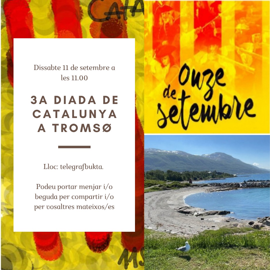 (Es la primera Diada que es celebra a Tromsø! Estarem tots plegats a les 17.00, per a les 17.14 fer soroll i, tot seguit, esmorzarem totes/tots plegades / plegats amb menjar que portem de casa.)