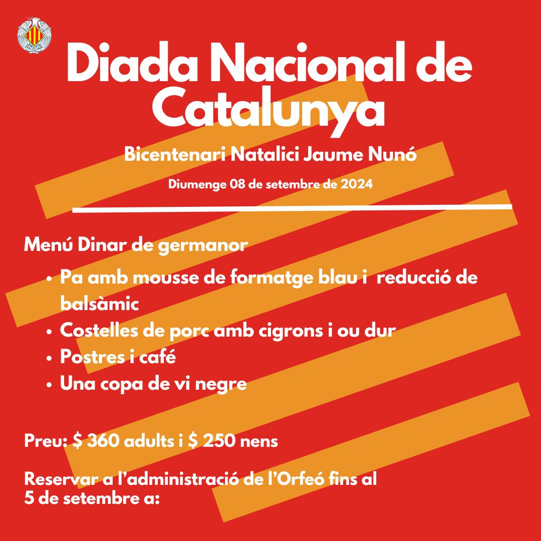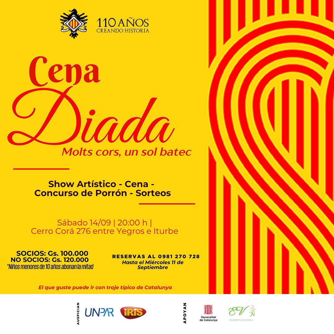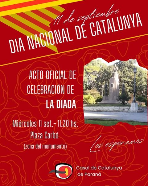 (El martes 10 de septiembre, vísperas de la Conmemoración de la DIADA Catalana - Día Nacional de Catalunya - junto a otras colectividades, el Casal de Catalunya homenajeará a aquellos inmigrantes que vinieron a nuestra Argentina y colaboraron en su construcción política y productiva y ofrecerá canciones -en catalán y castellano- en la voz de Juan Ignacio Aizcorbe, Reparadora vocal: Profesora Cintia Müller . Casal de Catalunya de Paraná Nogoyá, 123 - 3100 Paraná, ER - Argentina tel +54 43 4236719 catalunyaparana@gmail.com)