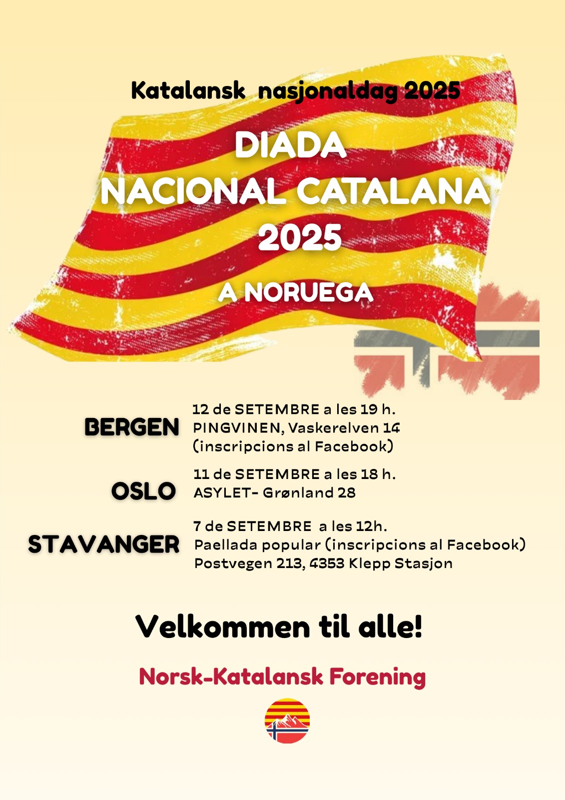 (Trobada a Bergen: Organitzada per l'Associació catalano-noruega (Norsk-Katalansk Forening, NKF) Trobada per celebrar la diada a Bergen en família, us esperem!!! Inscripcions al Facebook https://www.facebook.com/share/17AtD8481i/)
