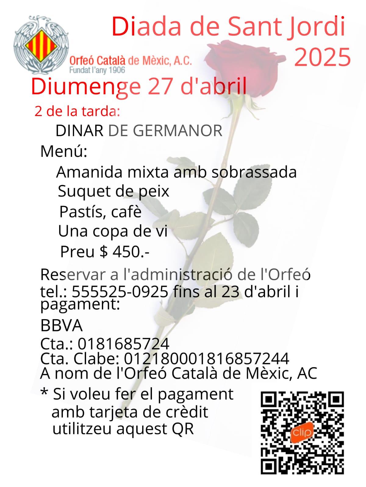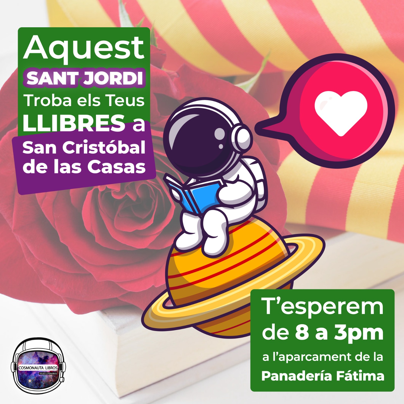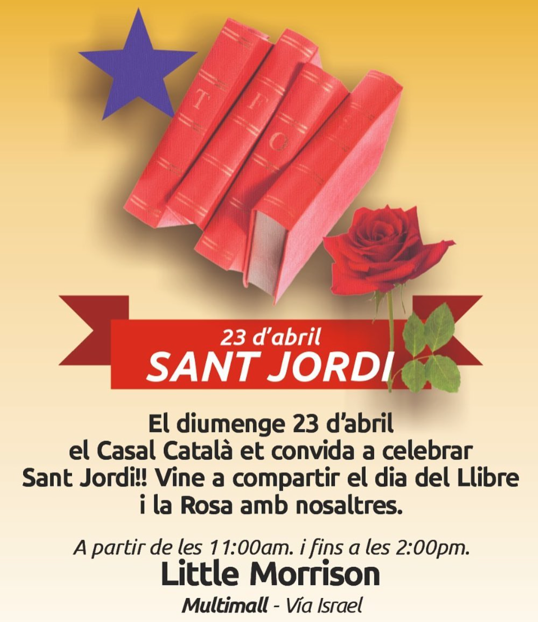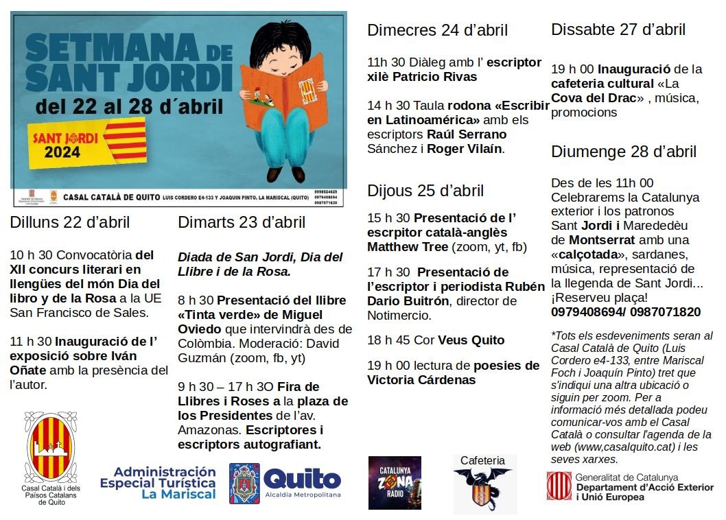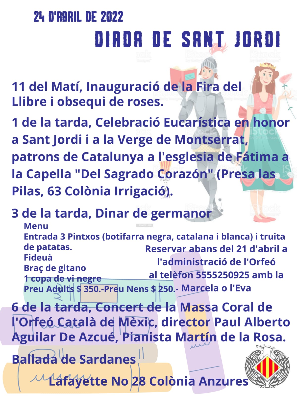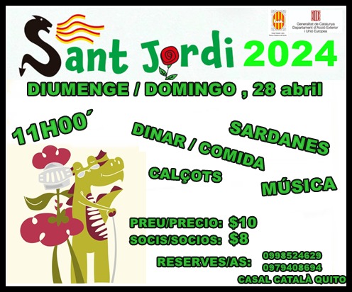 (“Afanya’t i reserva el teu espai a la taula - tothom hi és comptat!!!” el dissabte 26 d’abril, a partir de les 12:30am a la Terrassa de l’Hotel Gran Evenia Panamà, celebrarem la nostra diada del llibre i la rosa, també degustant un menú especial “farcit de sabors”!! Reserves fins al topall de 55 persones (nens i grans) abans del dimecres 23 d’abril al migdia! Visca la diada de Sant Jordi!! Fecha: 26 de abril Hora: 12:30 PM)