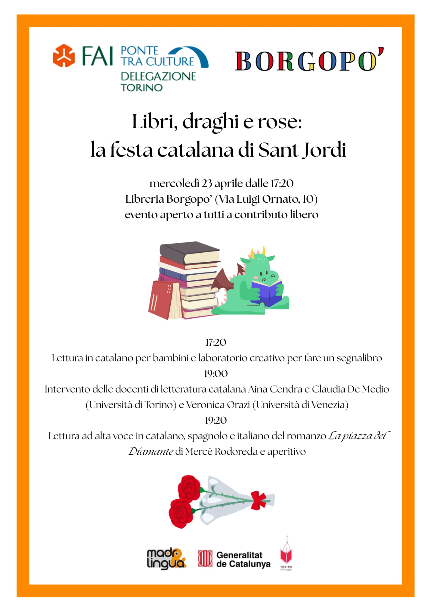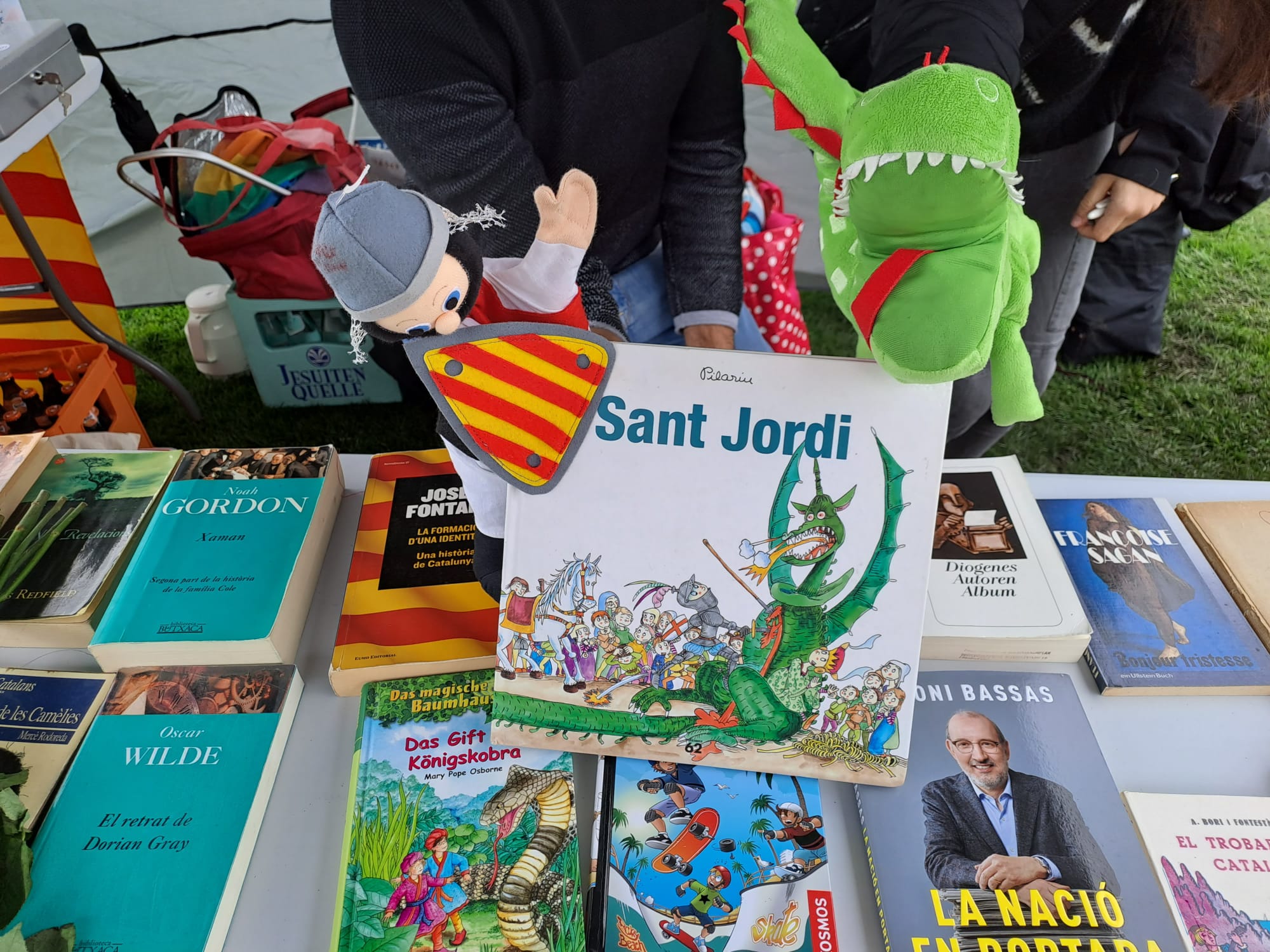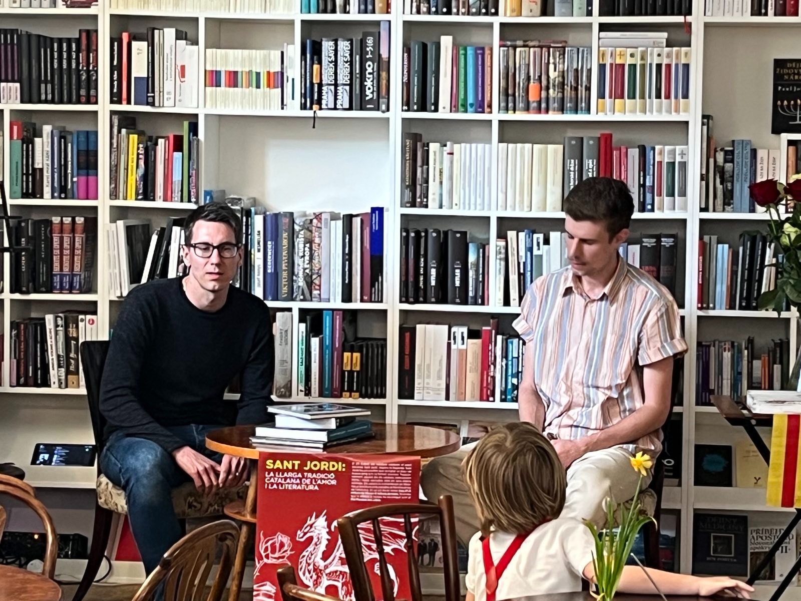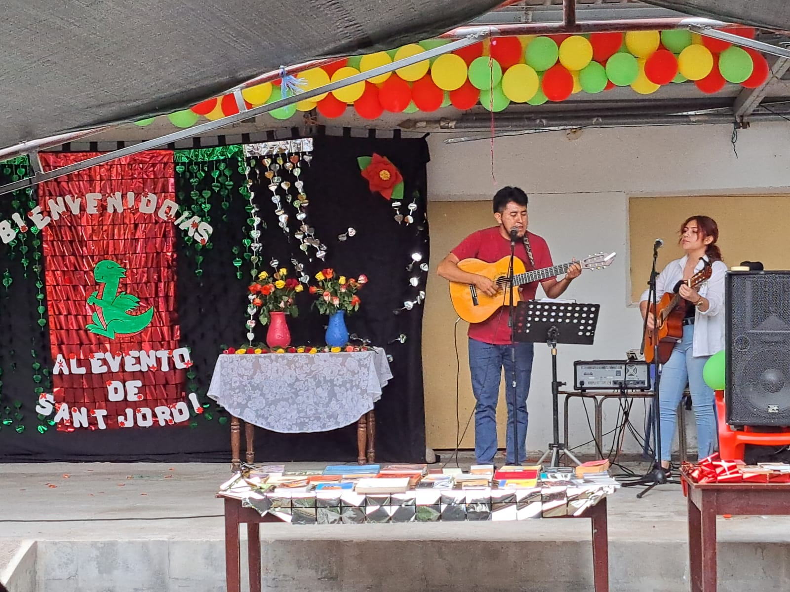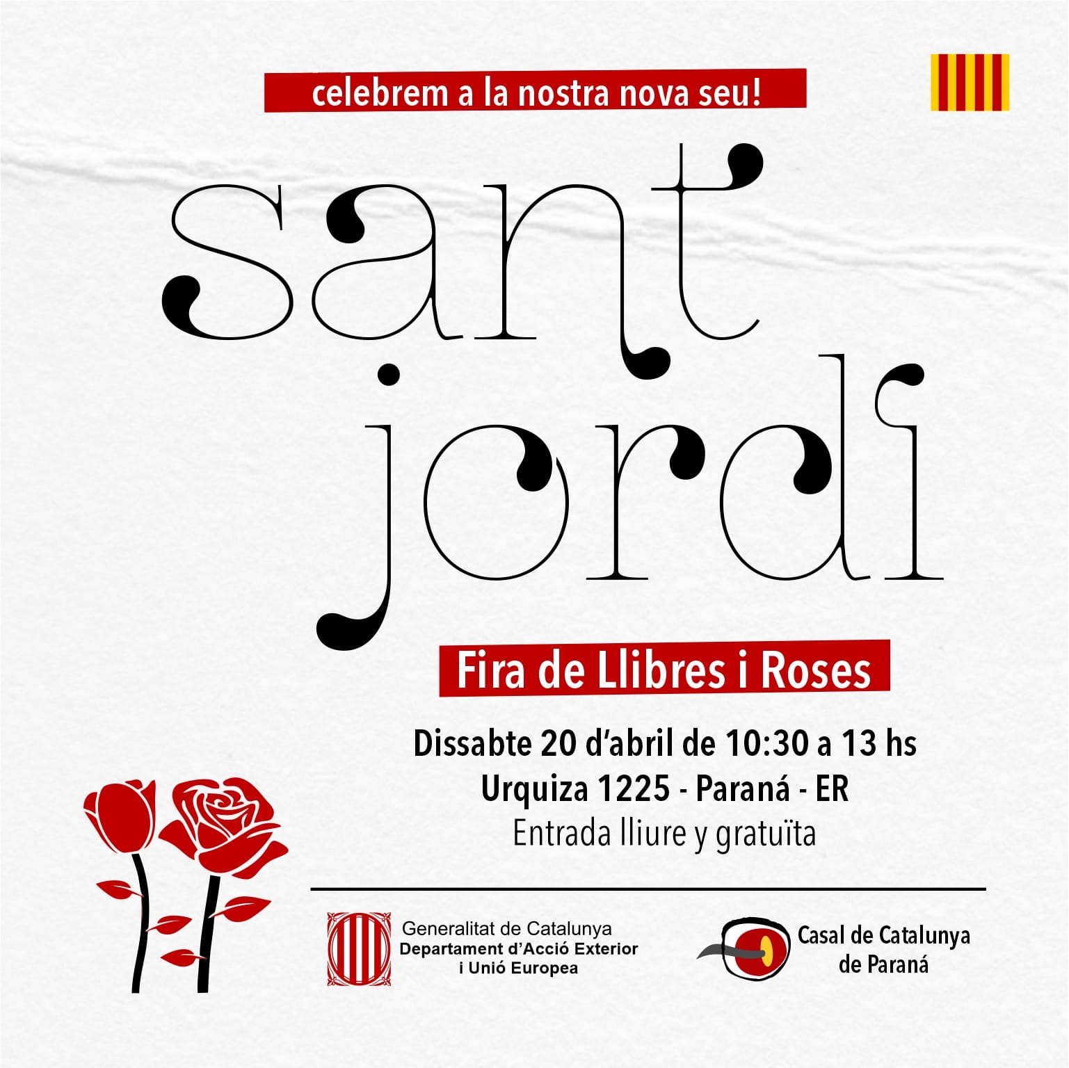 (Sant Jordi a Andorra la Vella! Sant Jordi també es celebra a Andorra amb una fira el dia 23 d’abril a la plaça de la Rotonda d’Andorra la Vella, amb llibres, roses i obsequis per als lectors més petits.)