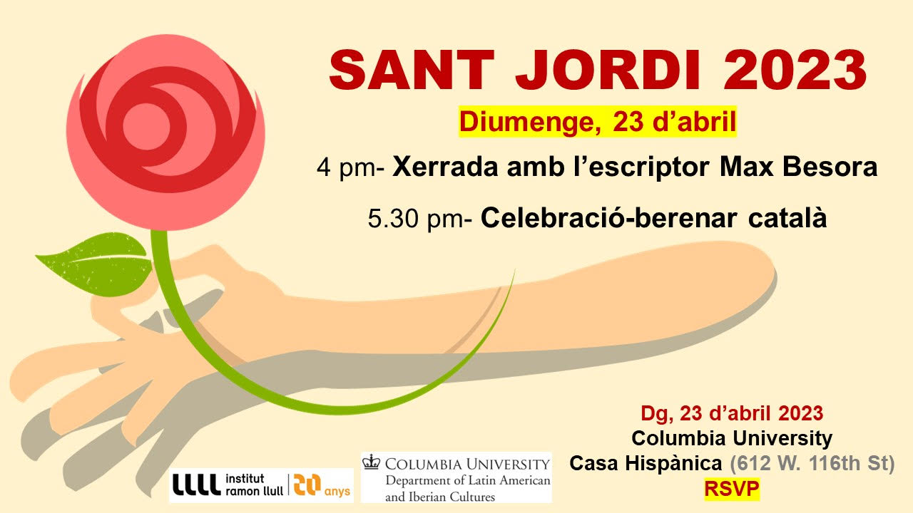 (Des del Programa de Català de UMass, us volem convidar a la nostra Diada de Sant Jordi, que aquest any se celebrarà dijous 24 d'abril, d'11:45h a 16h, a la sala 301 de Herter Hall. A la foto detallem el nostre programa, amb totes les activitats i tallers preparats! Hi haurà menjar i roses vermelles per a tots! Tot això és possible gràcies a la col·laboració de @irllull, @spanportumass, Edwin C. Gentzler Translation Center i el Departament de Llengües, Literatures i Cultures de UMass. És gratuït i tothom és benvingut! Animeu-vos-hi!)