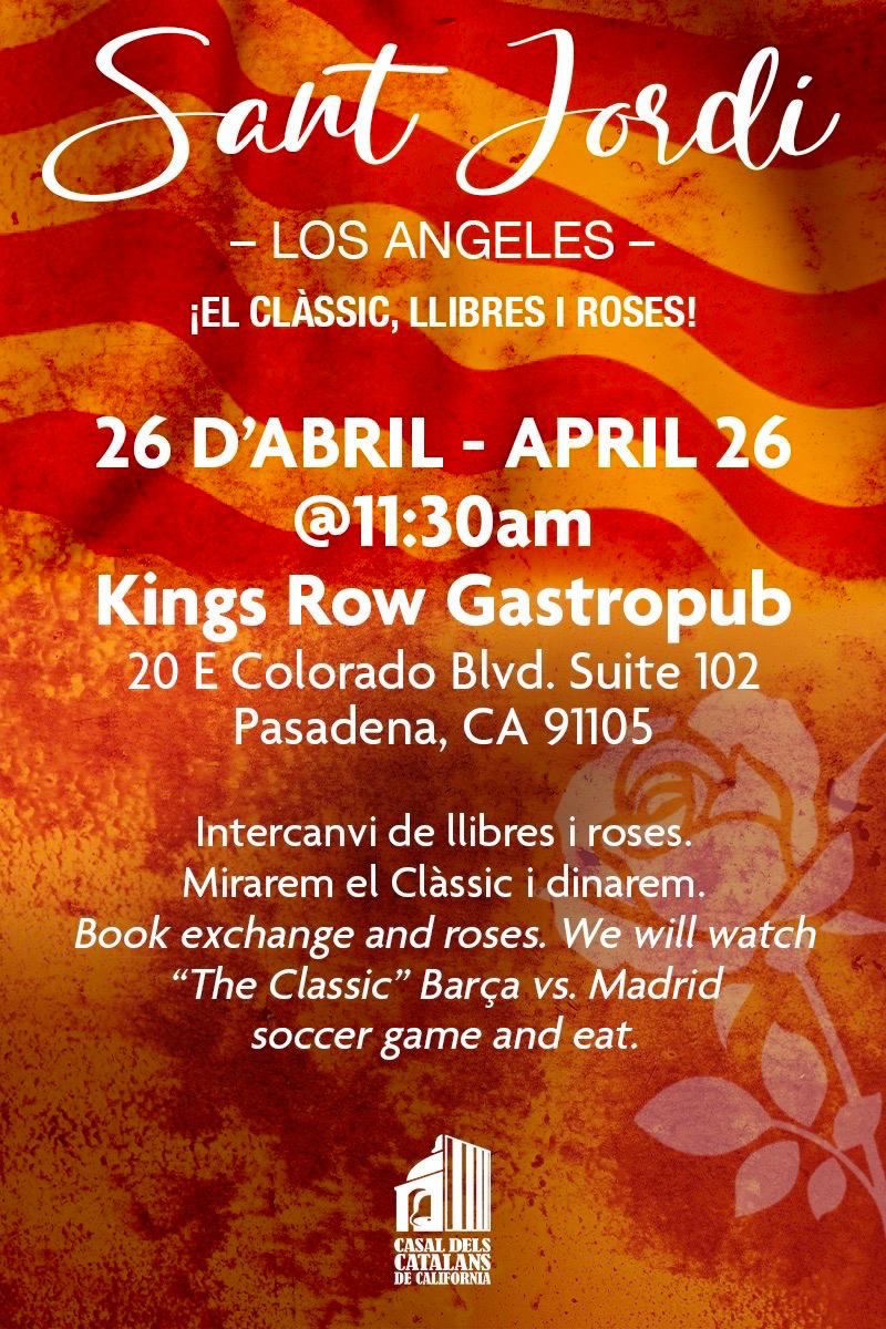 (Sant Jordi a Boston Vine a celebrar Sant Jordi a Boston i el primer any del Casal! Com l’any passat, ens trobarem al Urban Roof Garden de Cambridge, a les 6:00 pm. Què pots esperar? Roses, llibres, música, menjar i pickleball! Lloc: Urban Park Roof Garden, 325 Main St, Cambridge, MA Dia i Hora: Dimecres 23 d’abril a les 6:00 pm Per tenir una idea dels que serem, responeu el formulari i ajustem les quantitats de menjar.)
